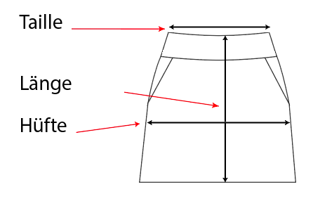 Der Rock ist taillenhoch geschnitten, mit einem breiten formenden unsichtbaren Gummi innen im Rockbund. Der Rock fällt luftig leicht in A-Form. Der Rock passt auch eine Nummer kleiner.